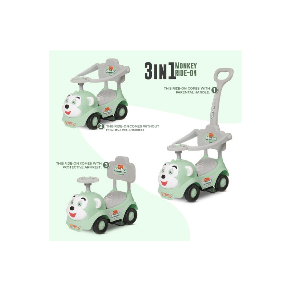 Name : Dash Monkey 3 in 1 Ride On for kids with Music & Parental Handle, Baby Car, Ride On for 2 years+ Kids, Push Car, Kids Car, Ride On for Kids, Ride On, Monkey Ride On For 2 Years, Ride On Car For Infants, Musical Ride On For 1 + Year Old, Ride On Push Car, Baccho Ki Gaadi, Gaadi For Kids (Green)